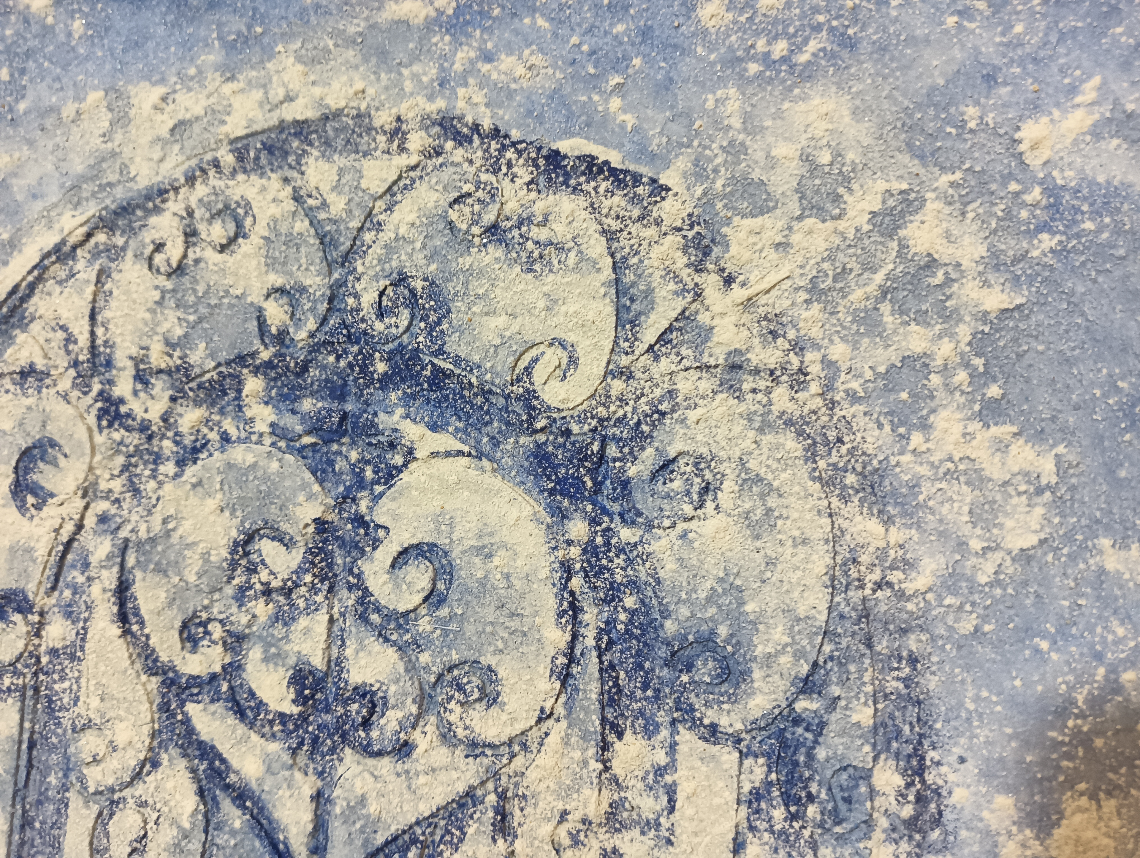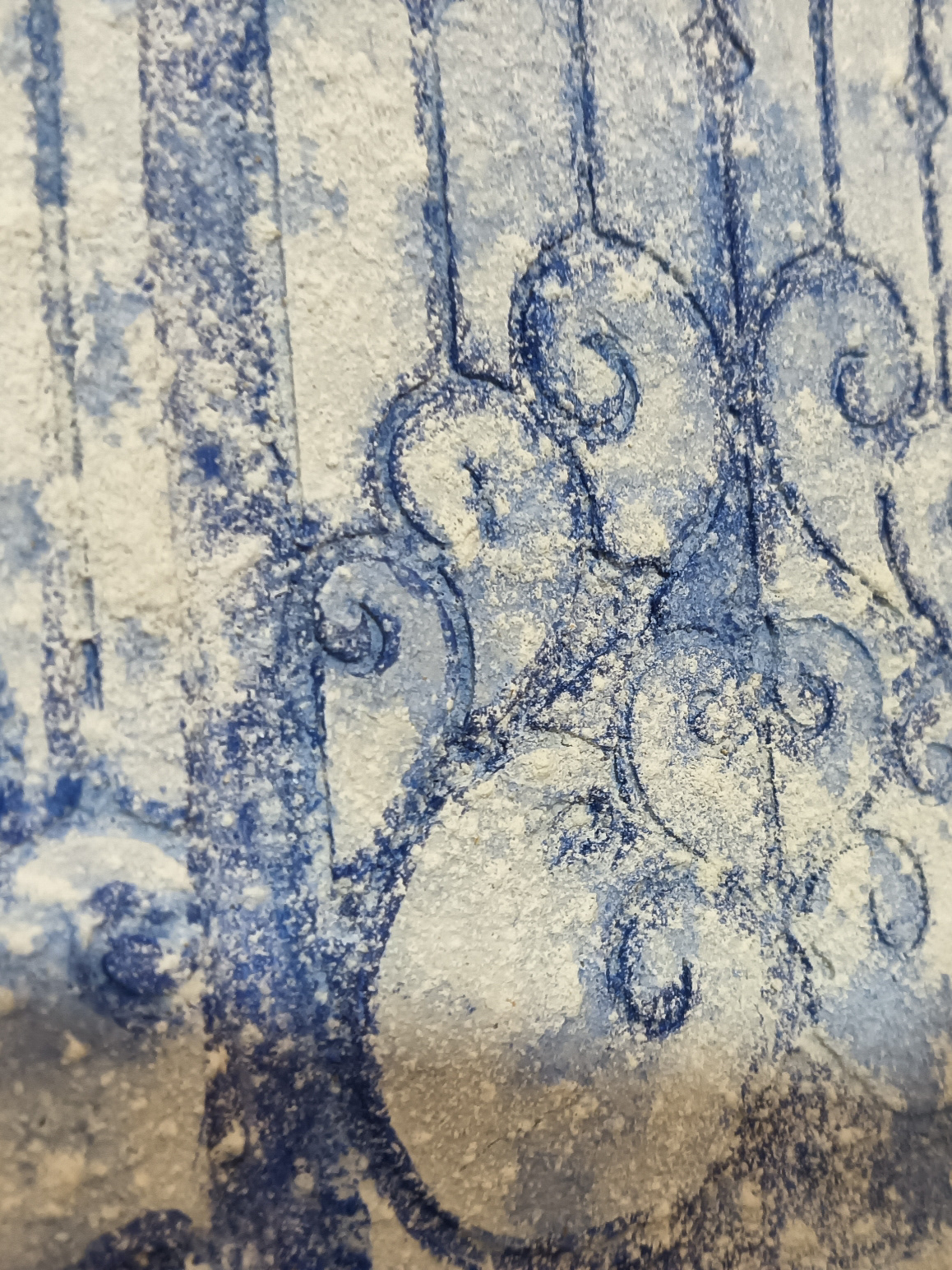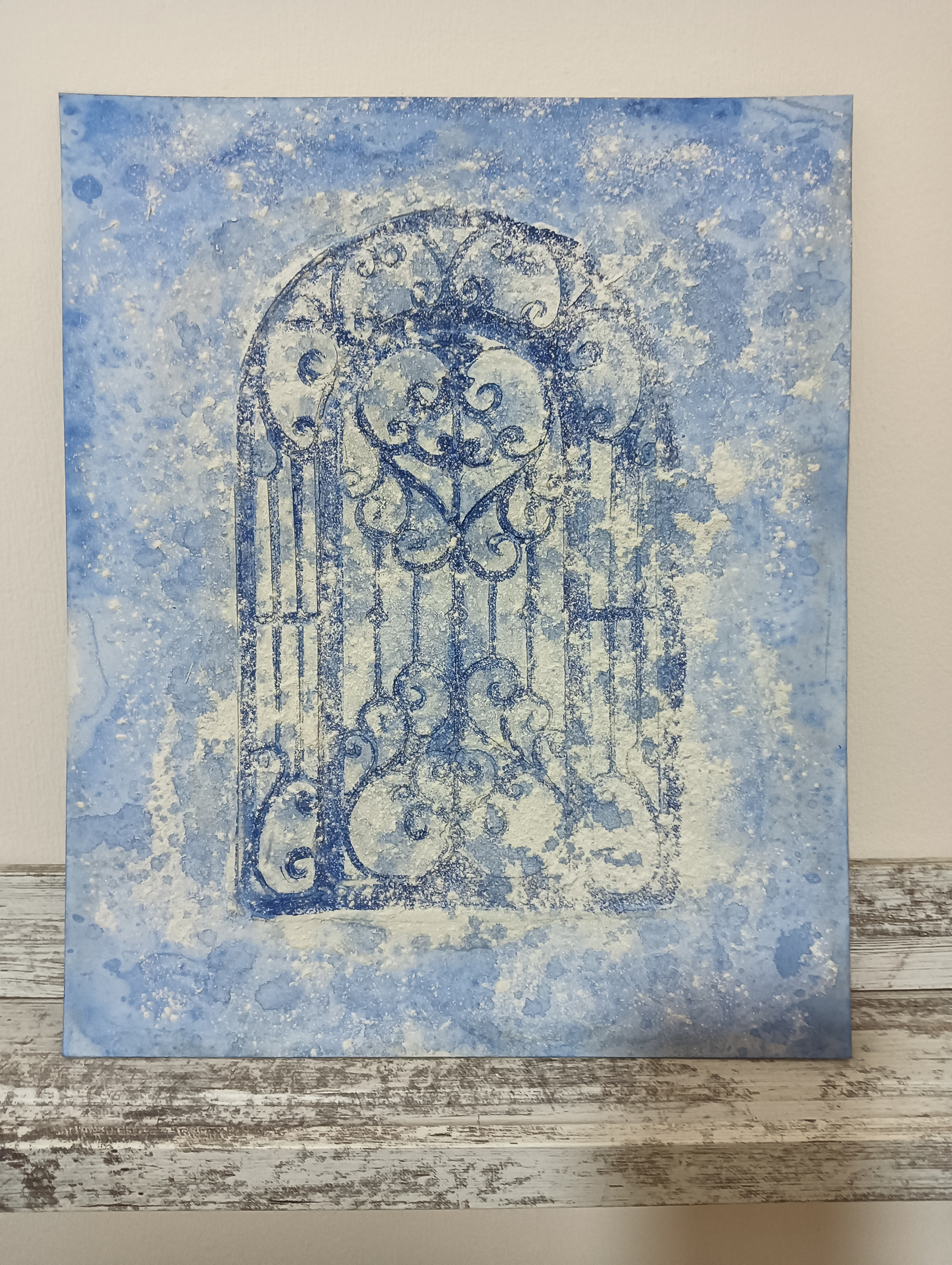 Técnica utilizada : Texturizado de pintura acrílica con jabón, reserva con cemento sobre molde de metal.